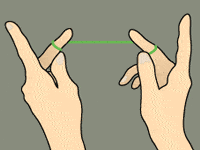 Wind about 18 inches of floss around your fingers as shown. Most of it should be wrapped around one finger, and the other finger takes it up as the floss is used.